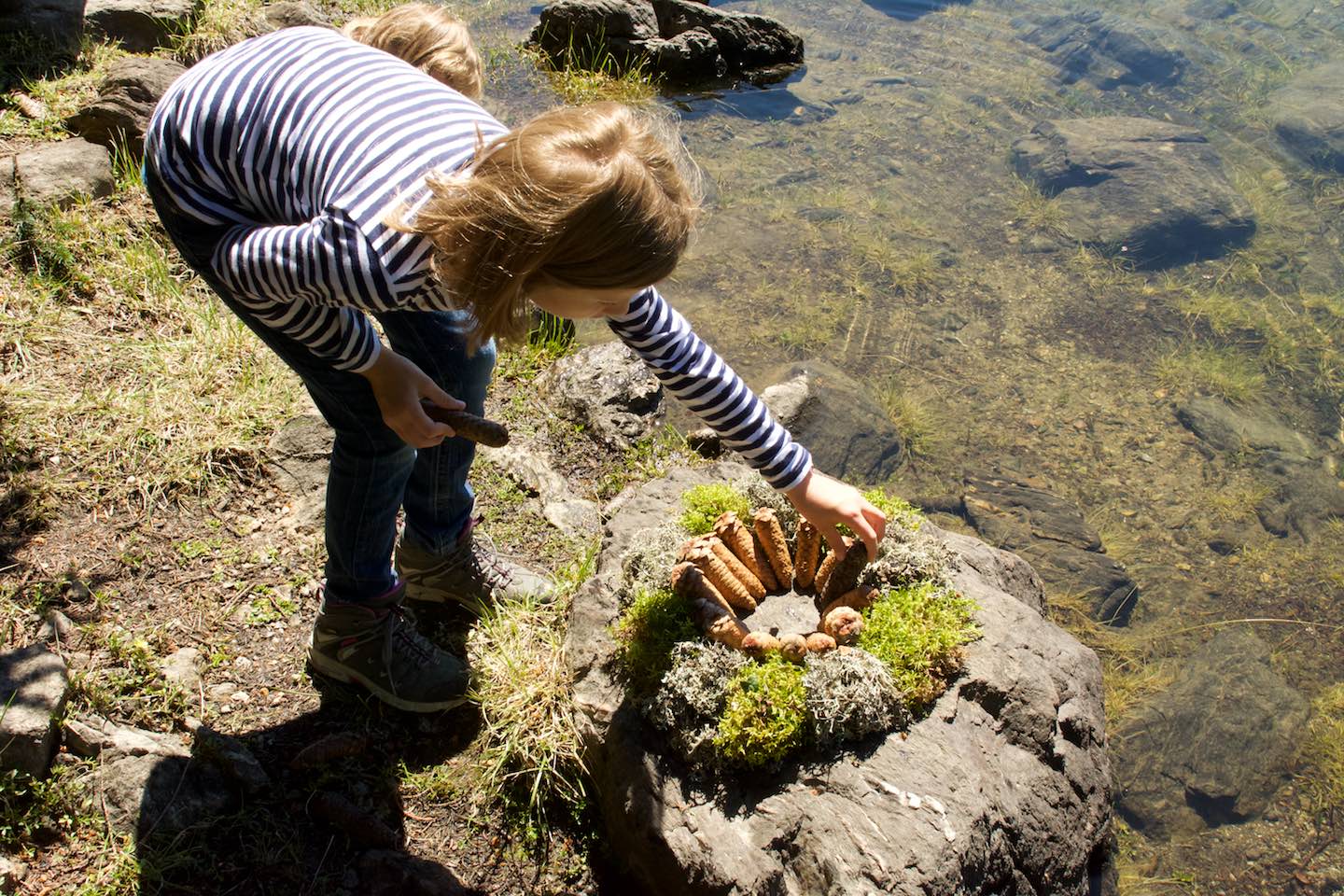 Ganz ohne Werkzeug erschaffen wir Neues, noch nie Dagewesenes. Dazu unterstütze ich Sie bei der Ideenfindung und begleite jede Person vom Impuls bis zur Vollendung ihres einzigartigen Kunstwerks. Wir respektieren die naturbelassenen Baustoffe in ihrem Umfeld und achten darauf, dass wir diese unversehrt am Ort zurücklassen. Zudem gestalten wir im Bewusstsein, dass die Objekte oft nur eine kurze Lebensdauer haben; denn letztlich fügen die Naturgesetze sie wieder in den natürlichen Kreislauf ein.